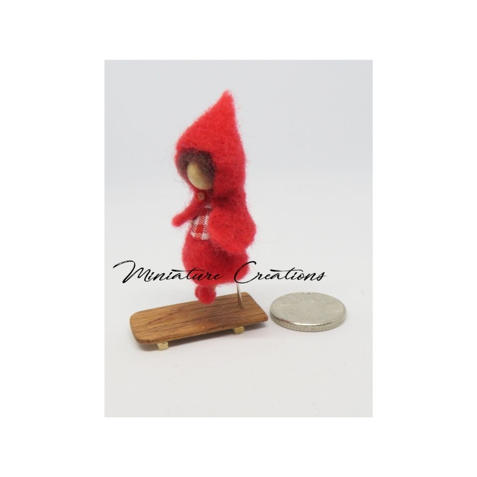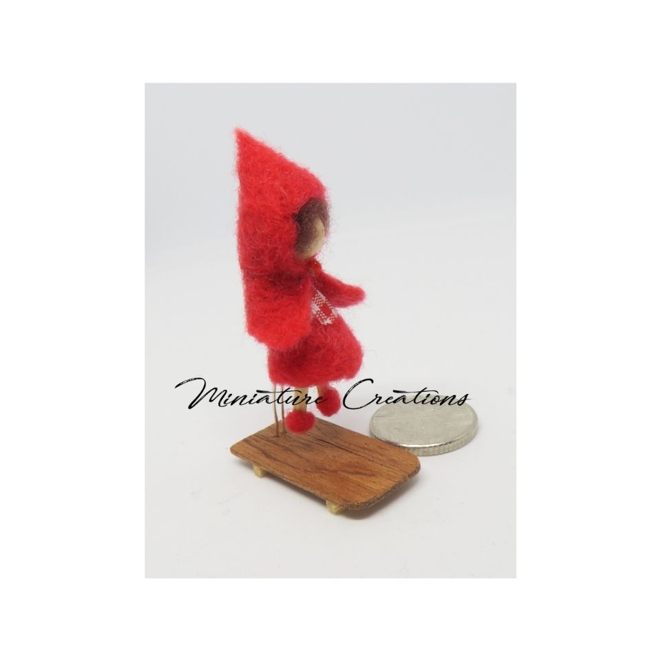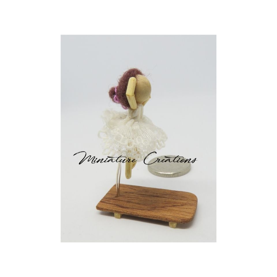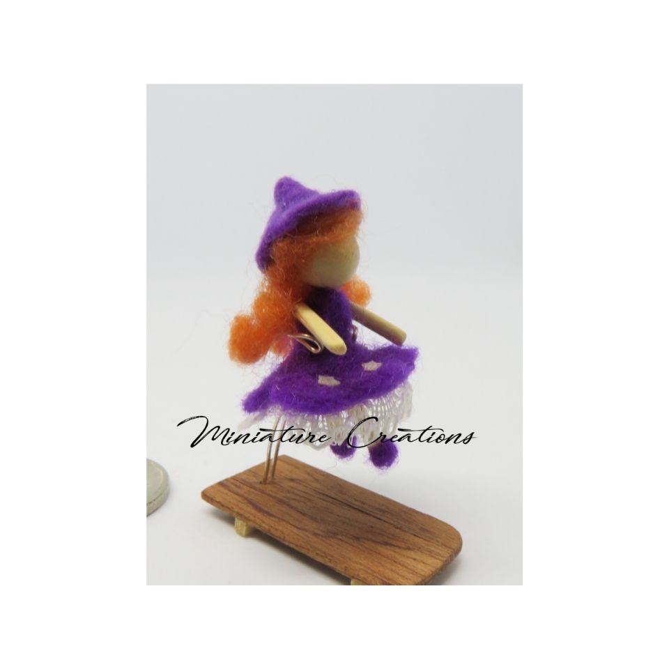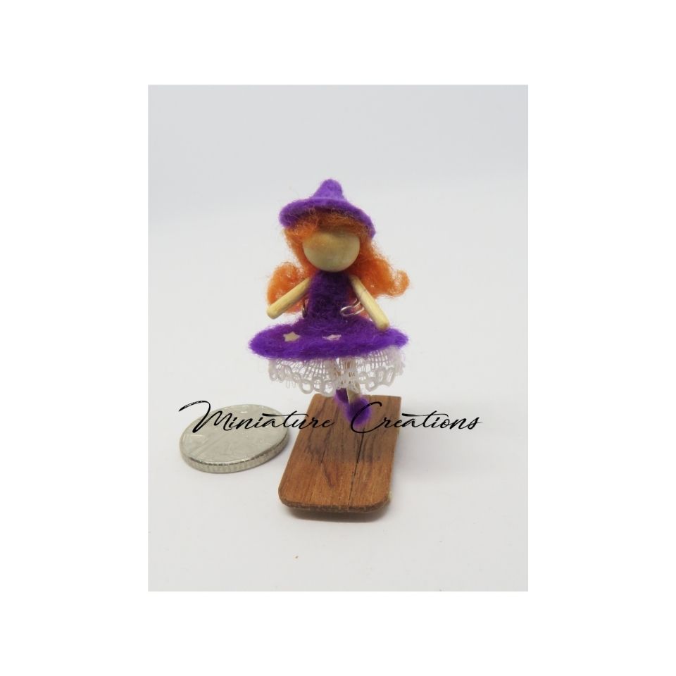 Doll is made of wood, arms and legs are fully movable. Dress is needle felted with a lace ribbon. I’ve been struggling with finding a fabric thin enough that would be good for sewing such a tiny dress, everything seems too stiff! The search still continues…